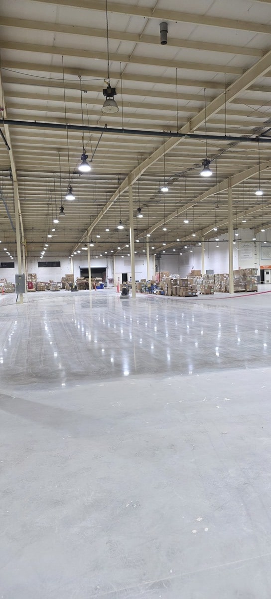 - Piso industrial con acabado brillante, uniforme y de alta durabilidad.